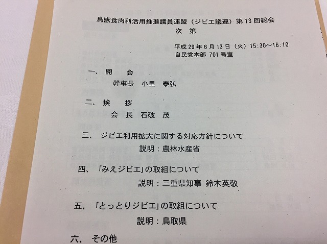自民党 鳥獣食肉利活用推進議員連盟〔ジビエ議連〕総会