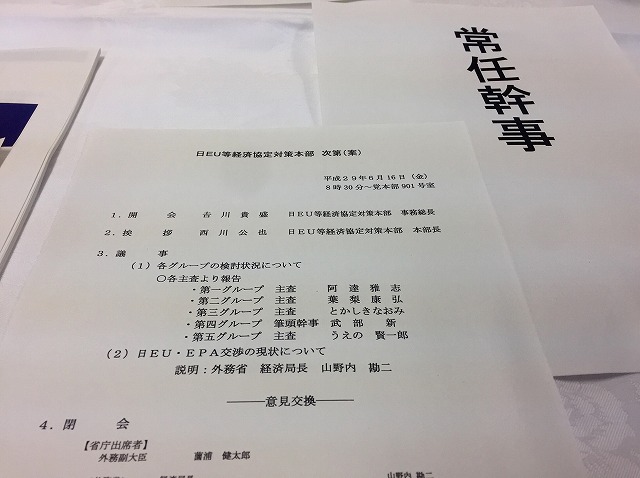 自民党 日EU等経済協定対策本部 ※常任幹事