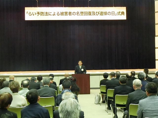 政府主催「 らい予防法による被害者の名誉回復 及び 追悼の日 」式典( 厚生労働省 講堂 ) ※超党派「 ハンセン病対策議員懇談会 」会長として挨拶