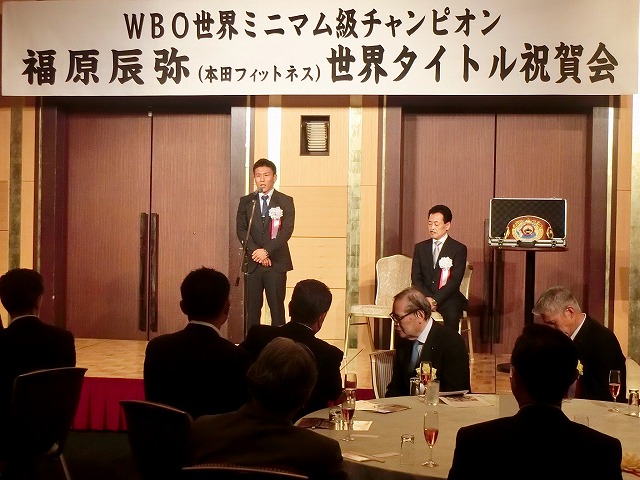 プロボクシング 「 WBO世界ミニマム級チャンピオン・〔本田フィットネスボクシングジム所属〕福原辰弥選手 世界タイトル祝賀会 」( 熊本市内 )