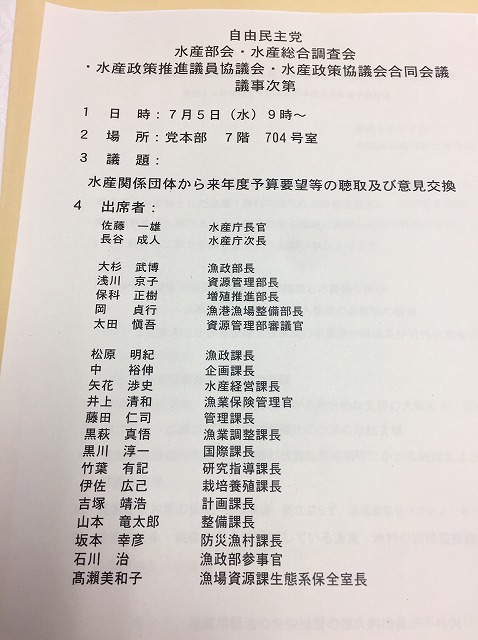 自民党 水産部会・水産総合調査会・水産政策推進議員協議会・水産政策協議会合同会議