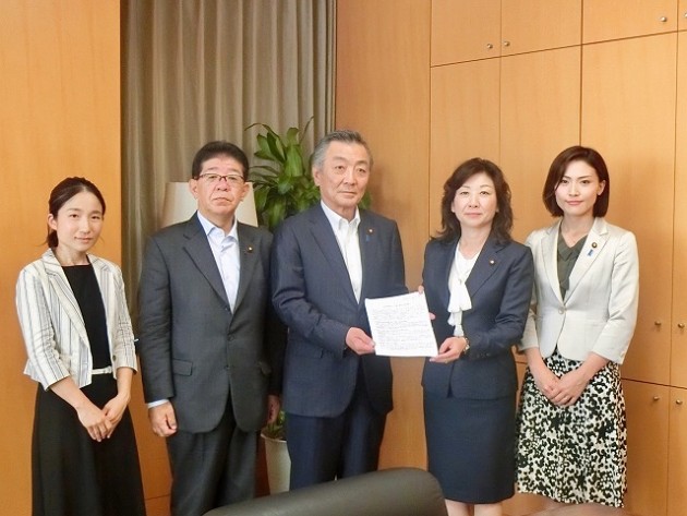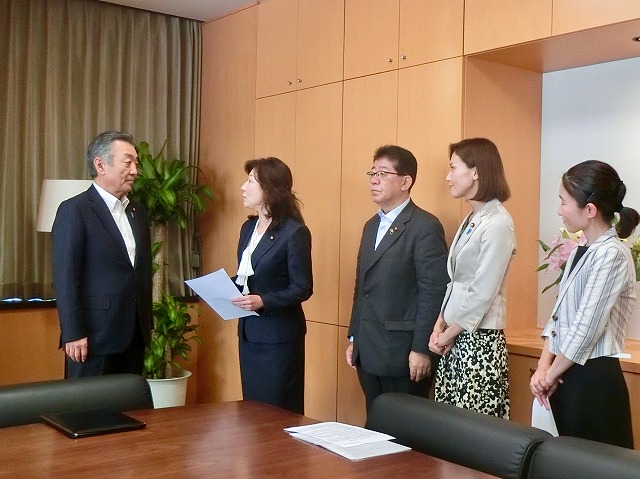自民党 乳児用液体ミルクの普及を考える会 「提言書」松本純 防災担当大臣へ 提出