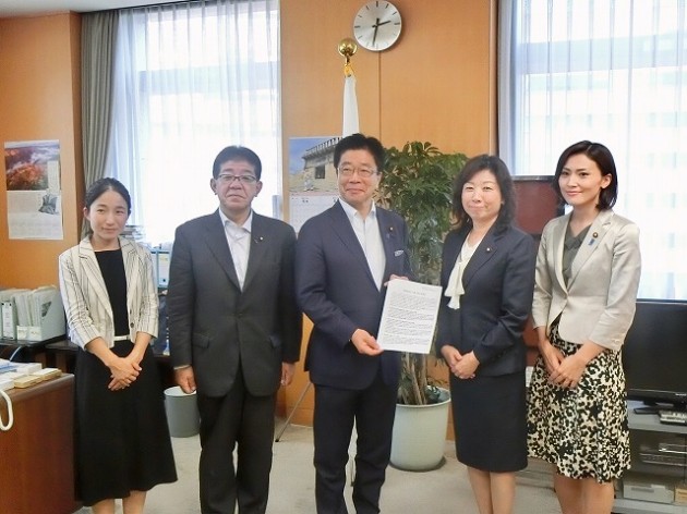 自民党 乳児用液体ミルクの普及を考える会 「提言書」加藤勝信 一億総活躍担当大臣へ 提出