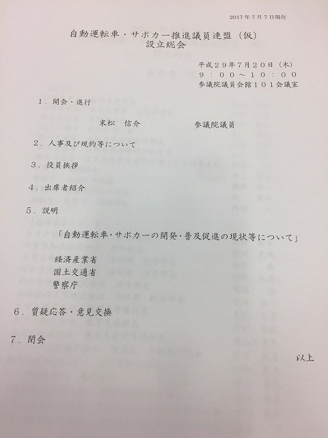 自民党 自動運転車・サポカー推進議員連盟 設立総会