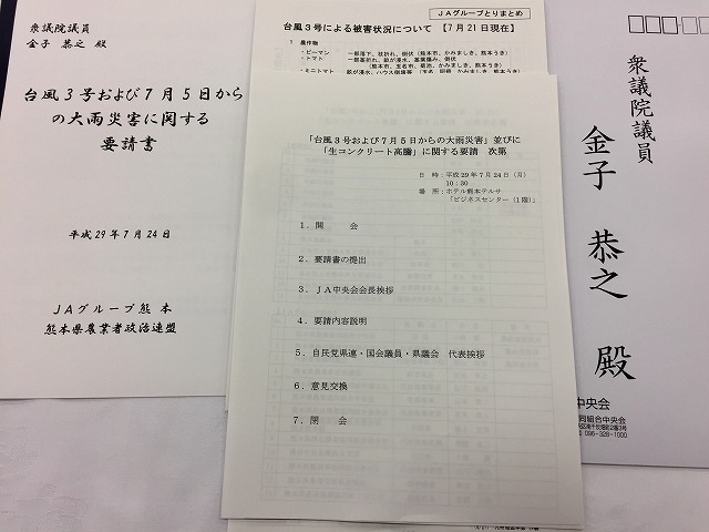 熊本県農業協同組合中央会・熊本県農業者政治連盟「台風3号および7月5日からの大雨災害」並びに「生コンクリート高騰」に関する熊本県選出国会議員・県議会 及び 自民党県連への要請集会(熊本市内)