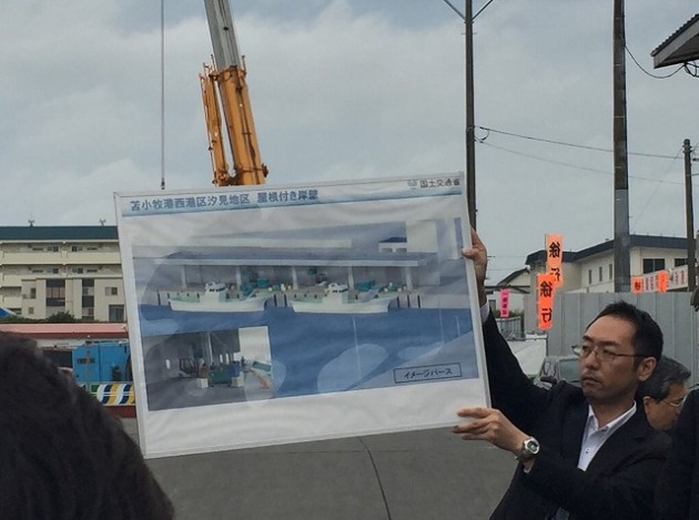 自民党港湾議員連盟「北海道視察 1日目⑧苫小牧港(汐見地区、苫小牧漁協より屋根付き岸壁等の品質・衛生管理対策、水産物輸出に向けた取り組みについて説明) ※幹事長代行