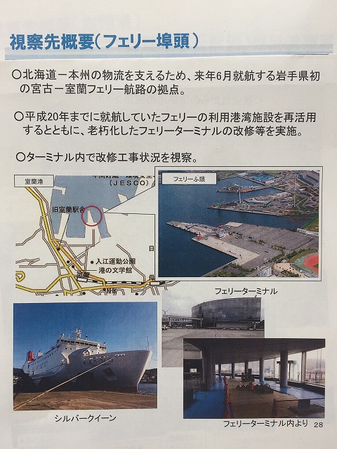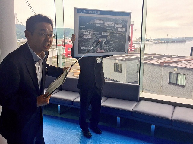 自民党港湾議員連盟「北海道視察 2日目③室蘭港(フェリー埠頭、室蘭市・市長、副市長、川崎近海汽船より概要説明) ※幹事長代行