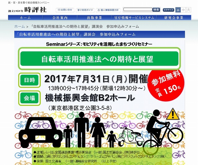 時評社「モビリティを活用したまちづくりセミナー 〜自転車活用推進法への期待と展望」にて、※超党派「自転車活用推進議員連盟」事務局長として講演