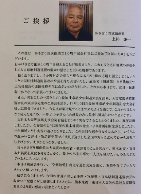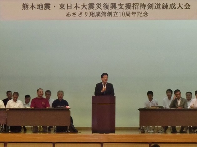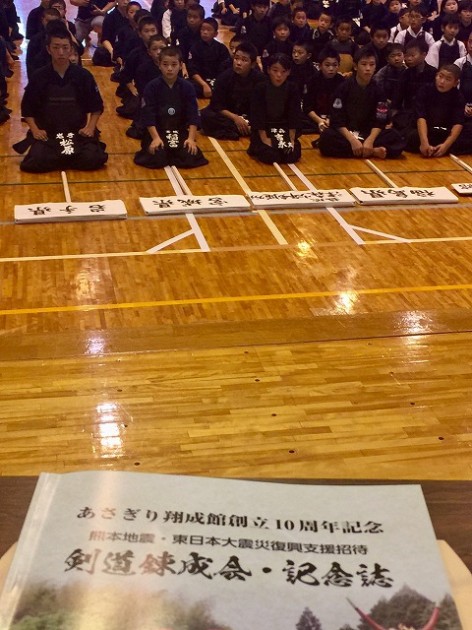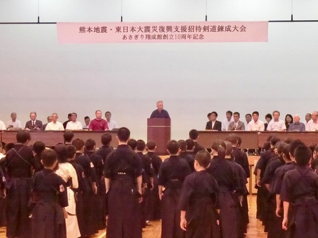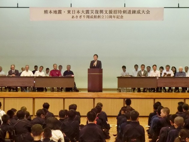 あさぎり翔成館創立10周年記念「熊本地震・東日本大震災復興支援招待 剣道錬成大会」(あさぎり町深田・高山運動公園 体育館) ※熊本地震の被災地・益城、東日本大震災の被災地・岩手、宮城、福島の少年剣士を招待