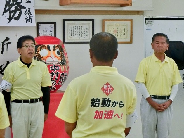 〔 八代市長・市議会議員 選挙 〕中村ひろお市長候補 遊説7日目〔最終日〕出発式 ※中村ひろお選挙対策本部長