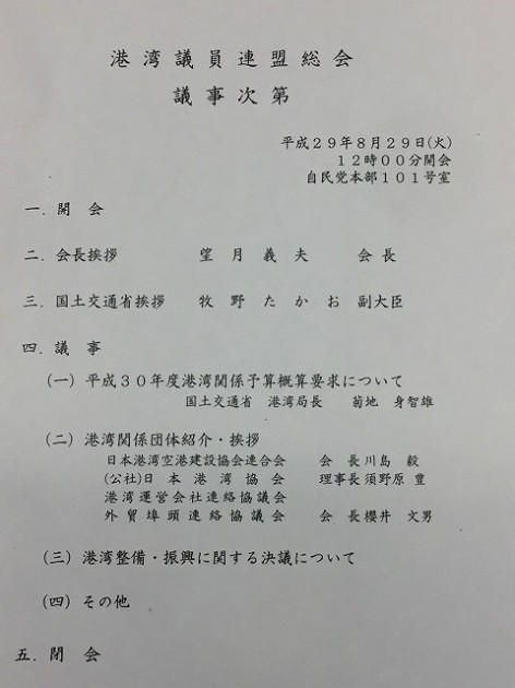 自民党 港湾議員連盟 総会 ※幹事長代行