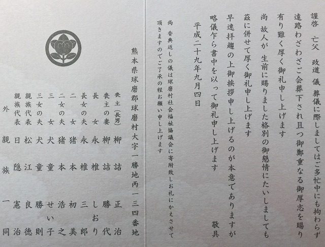 球磨村・柳詰正治村長 ご尊父 葬儀(人吉市内)
