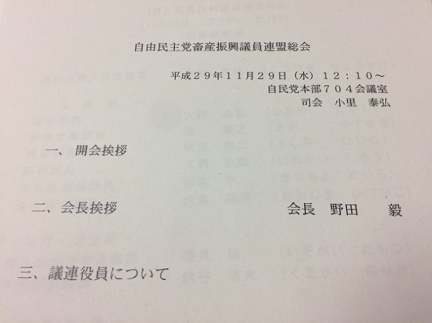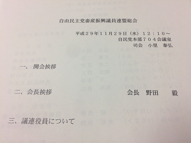 自民党 畜産振興議員連盟 総会