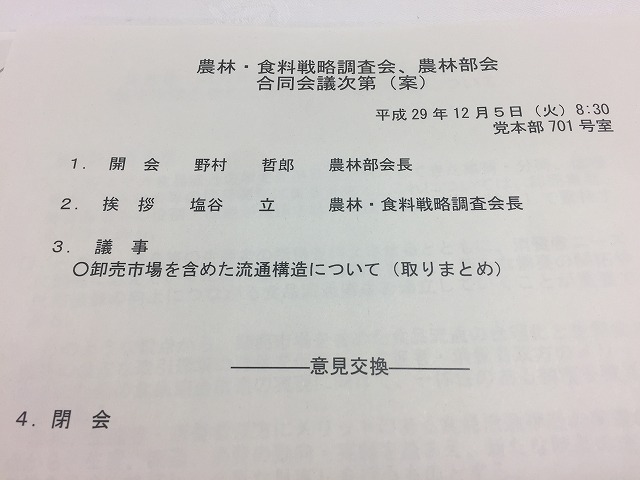 自民党 農林・食料戦略調査会、農林部会 合同会議