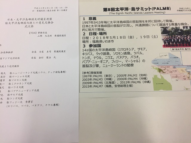 超党派 日本・太平洋島嶼国友好議員連盟「駐太平洋島嶼国大使との意見交換会」