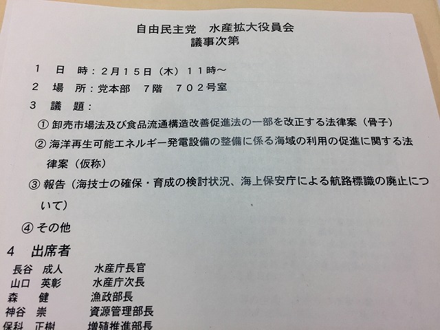自民党 水産拡大役員会 ※水産総合調査会・副会長