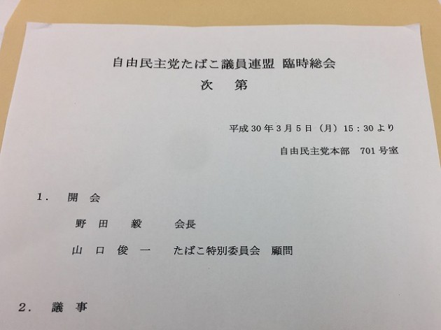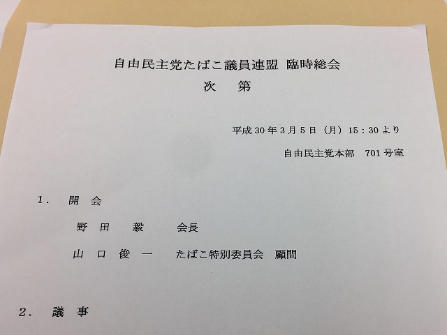 自民党 たばこ議員連盟 臨時総会 ※幹事長代理
