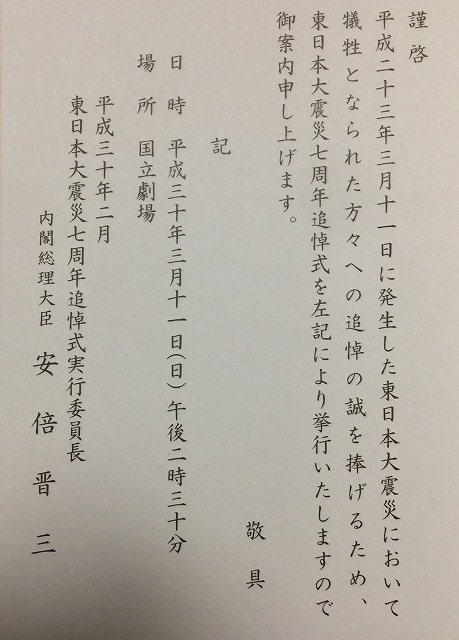 東日本大震災七周年追悼式(国立劇場)