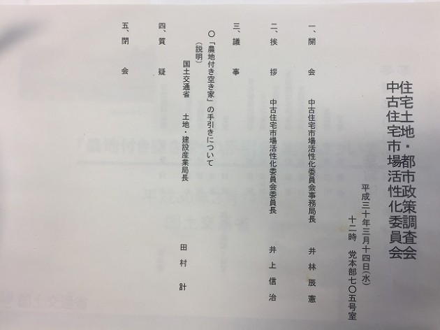 自民党 住宅土地・都市政策調査会 中古住宅市場活性化委員会
