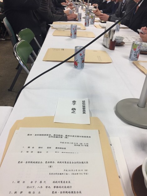 自民党 農林・食料戦略調査会、農林部会、農林水産災害対策委員会 合同会議→自民党 農林・食料戦略調査会、農林部会、林政対策委員会 合同会議 ※林政対策委員長