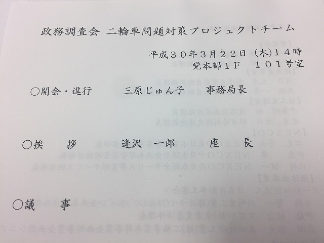 自民党 二輪車問題対策プロジェクトチーム