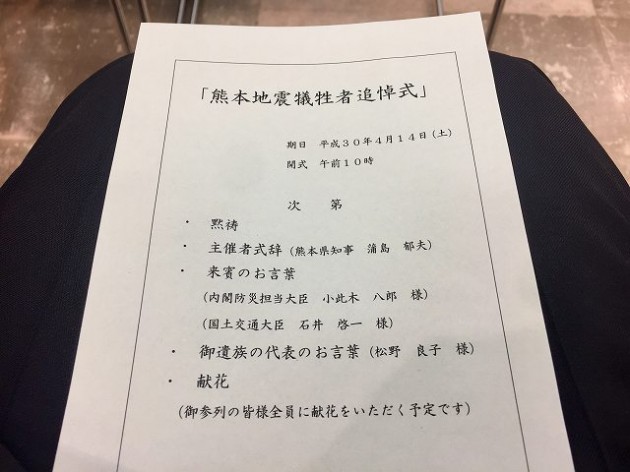 熊本地震犠牲者追悼式(熊本県庁)