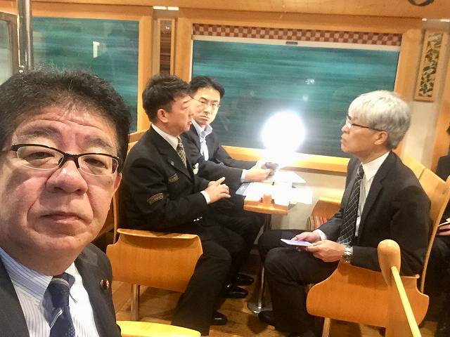 国土交通省・鉄道局長、九州運輸局長ほか「くま川鉄道に乗車(人吉温泉駅〜おかどめ幸福駅)・視察」に同行