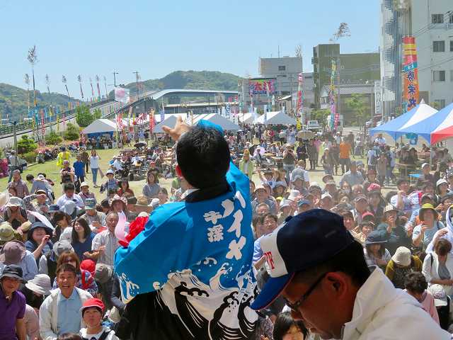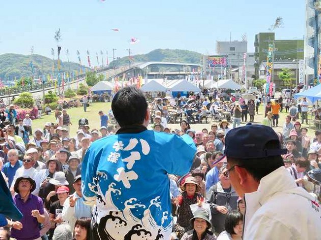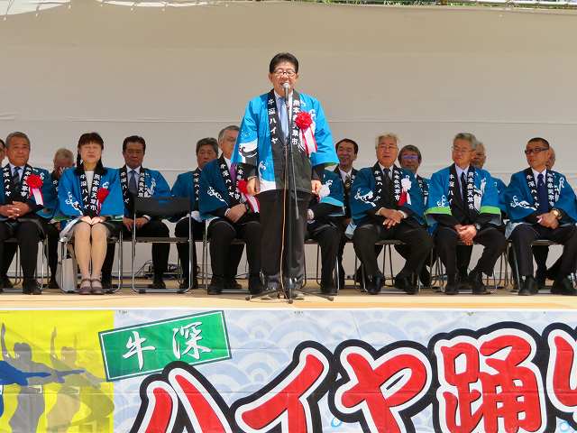 牛深ハイヤ祭り「ハイヤ記念式典」・餅投げ