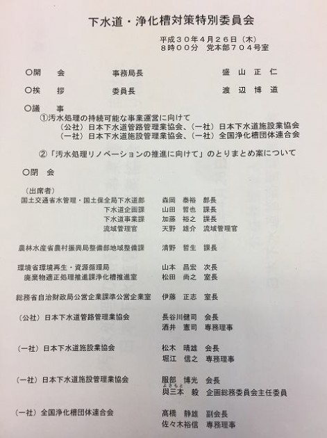 自民党 下水道・浄化槽対策特別委員会 ※副委員長