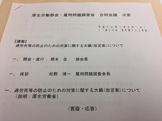 自民党 厚生労働部会・雇用問題調査会 合同会議
