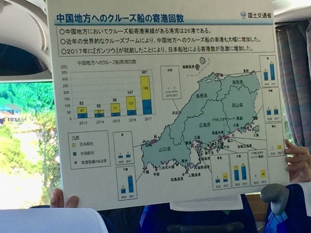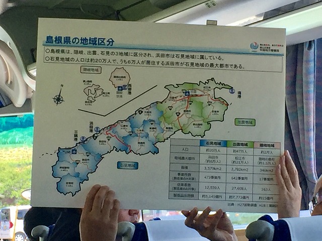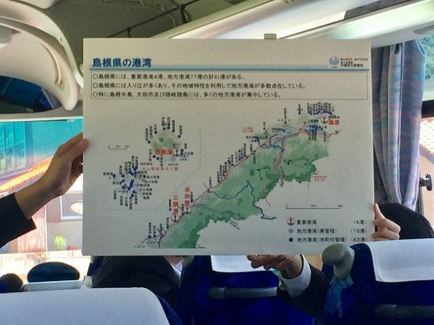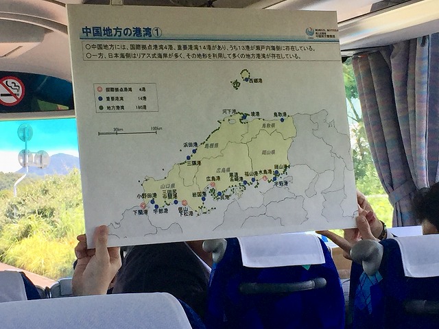 自民党港湾議員連盟「現地視察(島根県 萩・石見空港 → 浜田港 移動バス車内で中国地方・島根県港湾事情 説明聴取) 」 ※幹事長代行