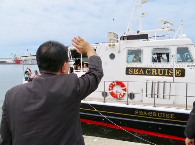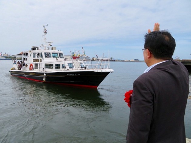 「 八代・天草 観光航路 実証事業 」出発式〔お見送り〕(八代内港) ※船旅活性化モデル地区 制度
