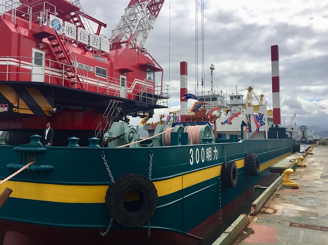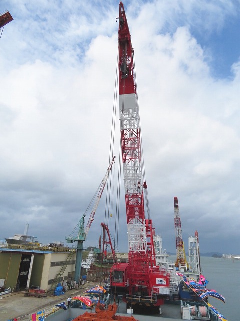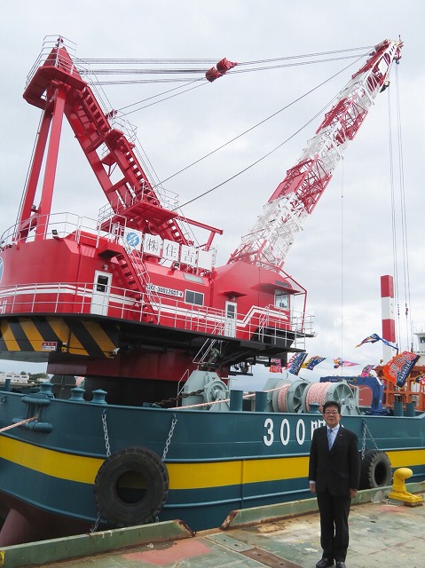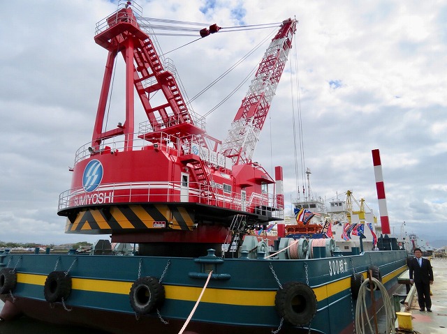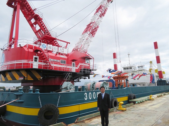(株)住吉 「 300t吊り多目的クレーン船『300明力』 新船披露 見学」(八代市・造船所 熊本ドック)