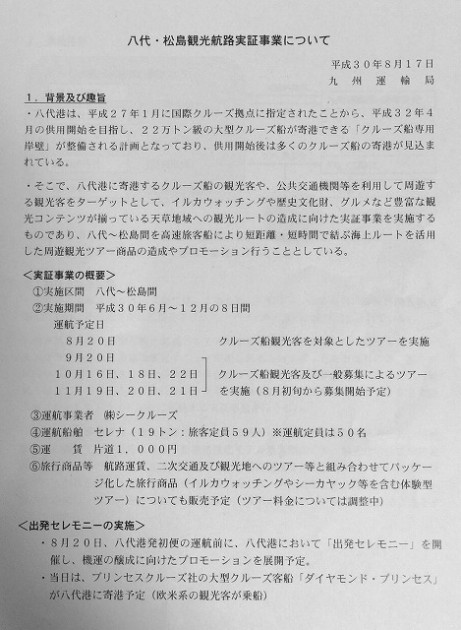 国土交通省・水嶋海事局長「八代・松島 観光航路実証事業・運航事業者 (株)シークルーズ 視察(上天草市)」へ同行
