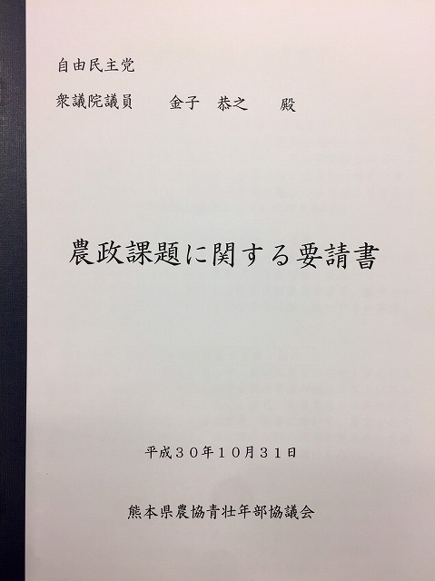 熊本県農協青壮年部協議会・前本委員長ほか役員 要請来室
