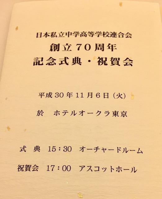日本私立中学高等学校連合会「創立70周年記念祝賀会」