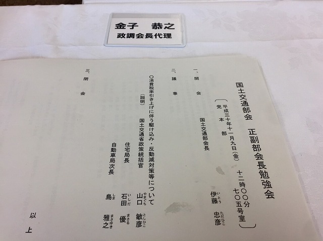 自民党 国土交通部会「正副部会長勉強会」 ※担当 政調会長代理