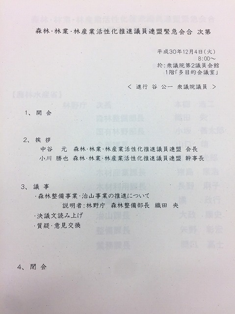 超党派「森林・林業・林産業活性化推進議員連盟」緊急会合 ※副幹事長