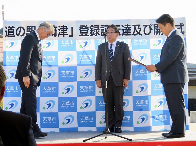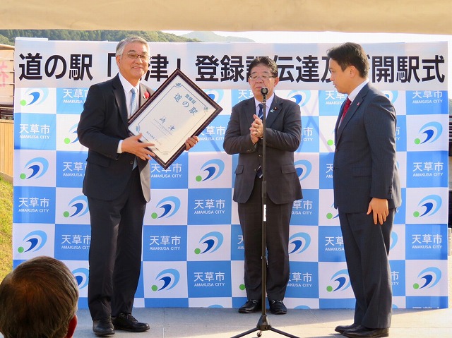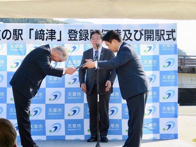 道の駅「崎津」登録証伝達 及び 開駅式(天草市・崎津集落ガイダンスセンター)