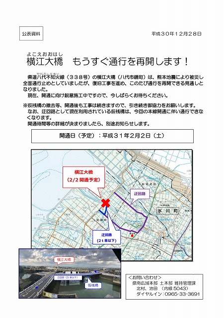 県道 八代不知火線・横江大橋(八代市鏡町)復旧工事現場 視察 ※2月2日 開通予定
