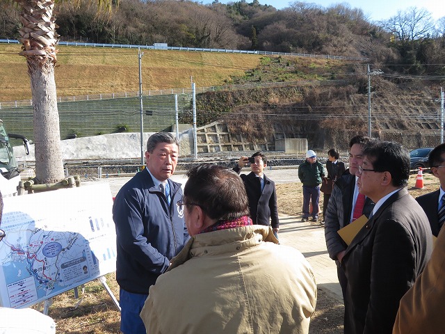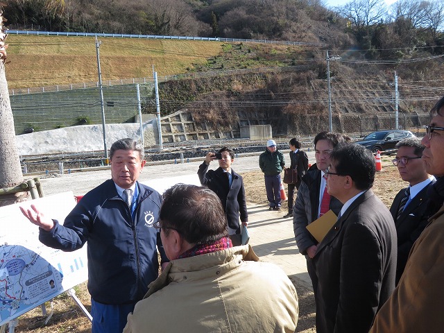 衆議院国土交通委員会「平成30年7月豪雨災害復旧状況視察(岡山県・広島県)⑤土砂崩落、法面崩落による道路迂回路確保箇所 ベイサイド坂(坂町水尻)※坂町・吉田町長 立会い」 ※与党筆頭理事