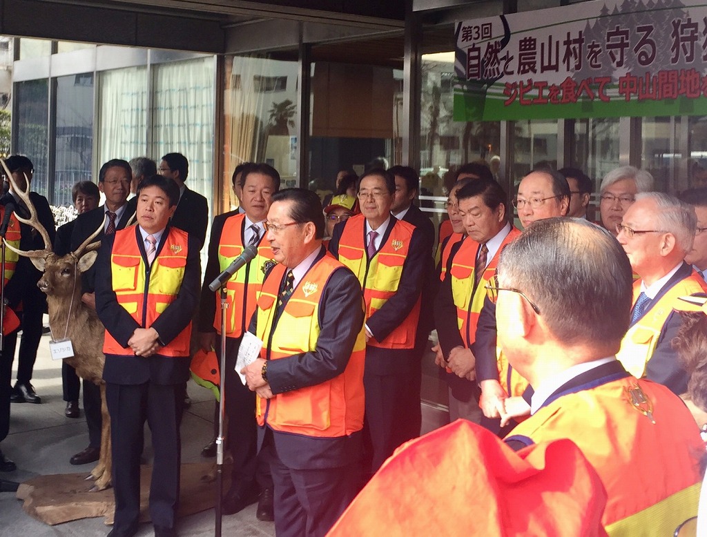 大日本猟友会主催「自然と農山村を守る狩猟のつどい」セレモニー(自民党本部 玄関)