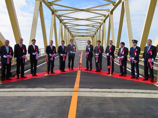 県道 八代不知火線「横江大橋」開通式典(八代市鏡町野崎) ※テープカット・渡り初め