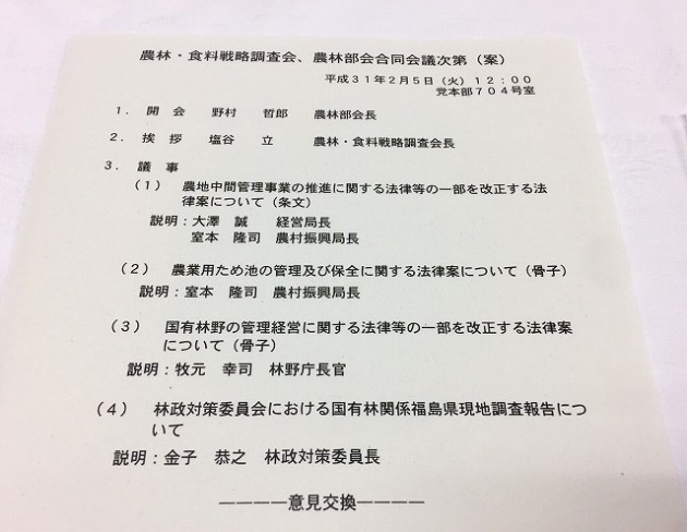 自民党 農林・食料戦略調査会、農林部会 合同会議 ※林政対策委員長として現地調査視察 報告