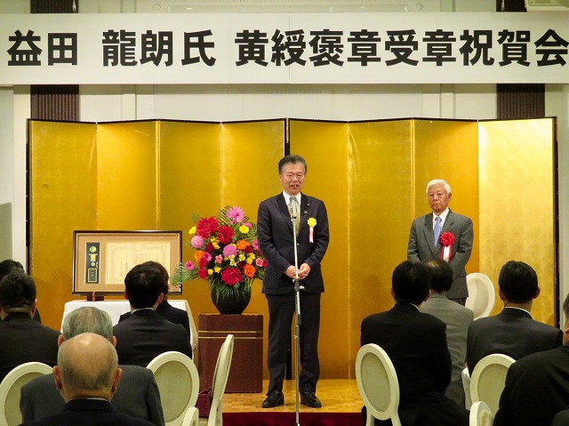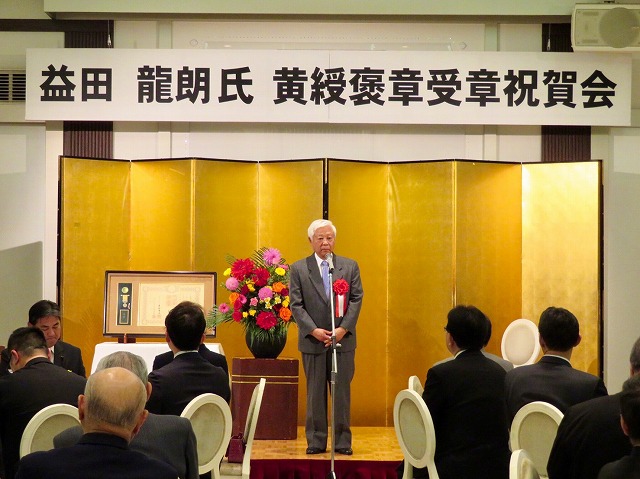 九州中部たばこ販売協同組合連合会・益田龍朗会長「黄綬褒章受章祝賀会」(熊本市内)