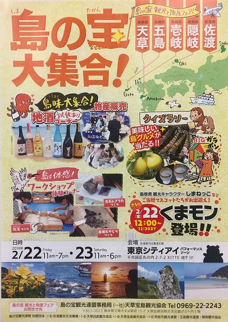 島の宝観光連盟「 島の宝 大集合! 島の宝 観光と物産フェア 」(東京シティアイ) ※天草宝島観光協会・天草四郎観光協会・佐渡観光交流機構・壱岐市観光連盟・五島観光連盟・隠岐観光協会