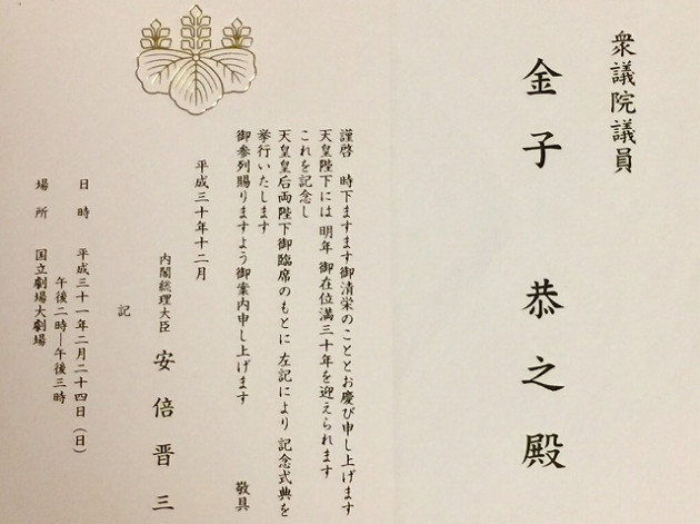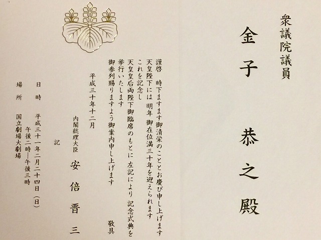 政府主催「天皇陛下御在位三十年記念式典(国立劇場)」