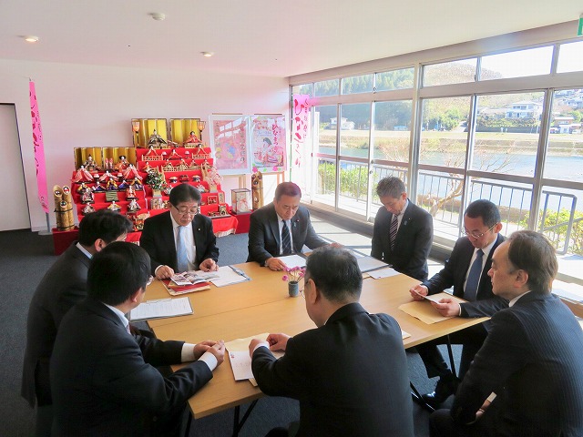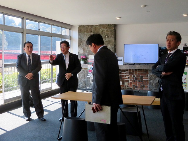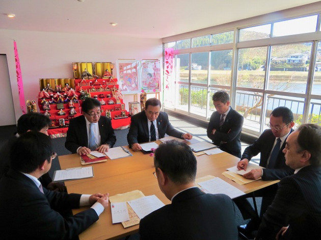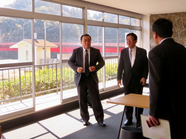 梶山弘志 前・地方創生担当大臣「くまりば〔人吉市まち・ひと・しごと総合交流館〕」視察・意見交換会 ※松岡人吉市長、溝口県議と共に同行