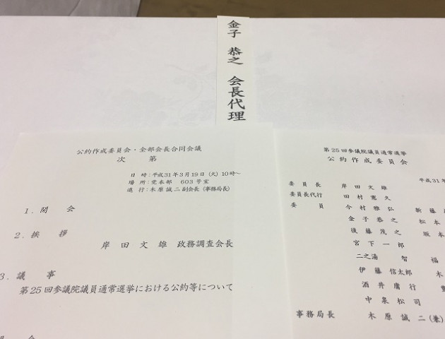 自民党 政務調査会「公約作成委員会・部会長 合同会議」 ※公約作成委員会 委員(政調会長代理)
