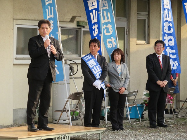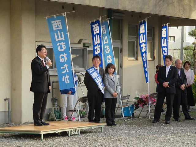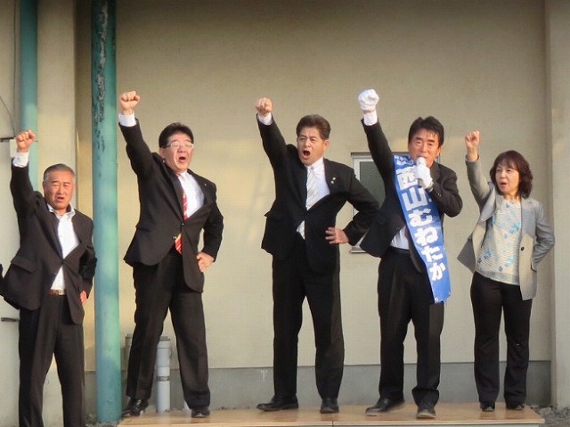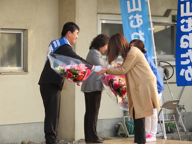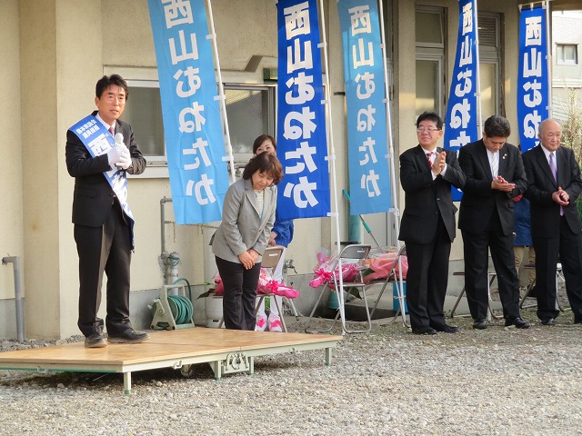 〔熊本県議会議員選挙 告示日〕 熊本県議会議員候補・西山宗孝「当選報告会(無投票当選)・熊本地震からの宇土市の復興を祈念しての頑張ろうコール」(宇土市・西山宗孝選挙事務所)